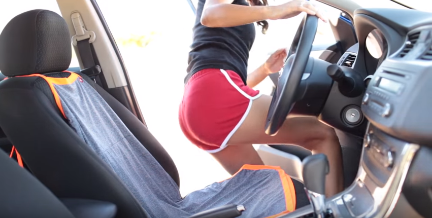 男が思っているよりも着替えに苦労しそうと、女性サーファーの方が車で着替える用意をしていたのを